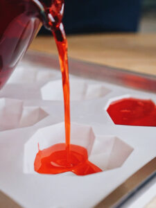 - The Pour:Â Carefully pour the gelatinous liquid into your silicone molds.Â