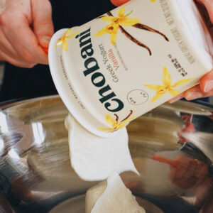 - Whisk for Structure: Whisk vigorously by hand until the mixture is completely smooth and slightly thickened (~ 2 minutes). The sugar will dissolve into the yogurt, adding slight structure to the mixture.
