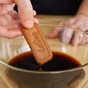 - The "Quick Dip": Pour your coffee into a shallow bowl. Dip each Biscoff cookie quickly. The cookies should be in the coffee for less than 1 second as they absorb liquids very quickly. Science Note: Do not soak them like ladyfingers! Biscoff are significantly more porous and will disintegrate if held too long.