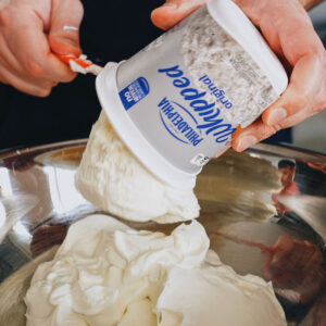 - The Problem: Block cream cheese is dense and has a high “yield stress,” meaning it requires significant force (like a stand mixer) to break down. If you mix it by hand with soft yogurt, you will get lumps.